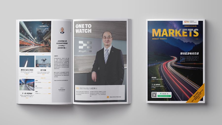 杂志 - 2021年10月版 10月 19, 2021 Markets Germany 推动能源电动交通: 电池是电动汽车变革的核心。早先,亚洲进口锂离子电池主导了欧洲的市场,而如今 ,生产正在转移至欧洲—尤其以德国为重。这意味着巨大变化和机遇。 页数 24 预订号 21174