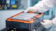AI Generated engineer or technician works in a lab with an EV car battery cells module.