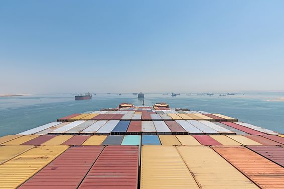 Vessel is transiting Suez Canal on her international trade route.