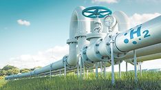 A hydrogen pipeline illustrating the transformation of the energy sector towards to ecology, carbon neutral, secure and independent energy sources to replace natural gas. 3d rendering