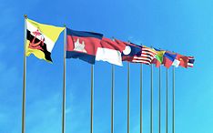 Asean Economic Community, Flaggen auf dem blauen HIntergrund