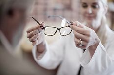 Optikerin, Brille, Mann