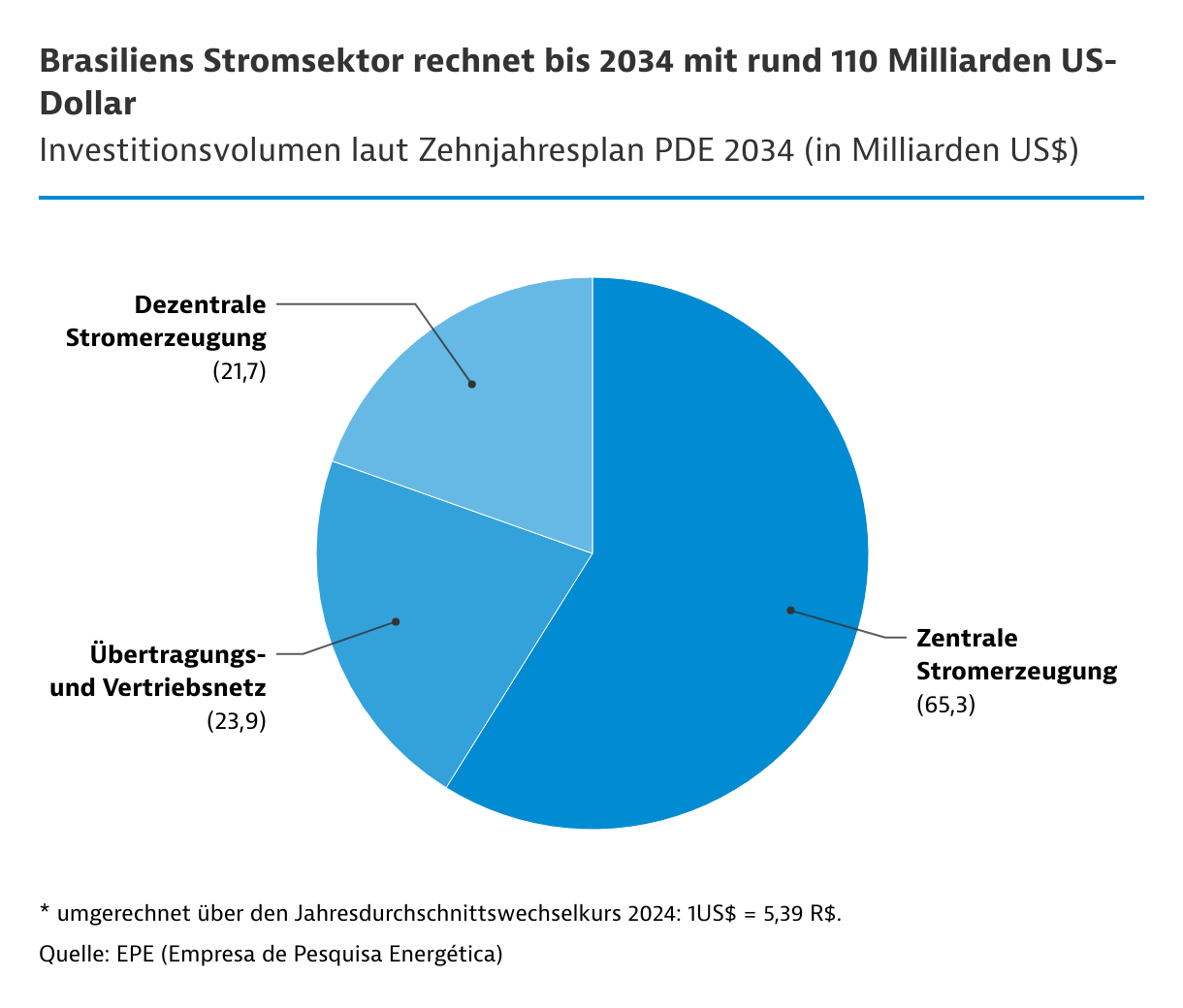 Laut dem aktuellen Plano de Desenvolvimento da Distribuição (PDD) planen die Konzessionäre von Verteilnetzen für den Zeitraum von 2025 bis 2029 Investitionen von über 40 Milliarden US-Dollar (US$). Davon fließen 61 Prozent in den Ausbau des Netzes, 25 Prozent in Verbesserungen und 14 Prozent in Renovierungen. Zusätzlich zu den 53 Konzessionären verfügen 52 kleine Energieversorger und Energiegenossenschaften über eine Betriebsgenehmigung von Verteilnetzen.