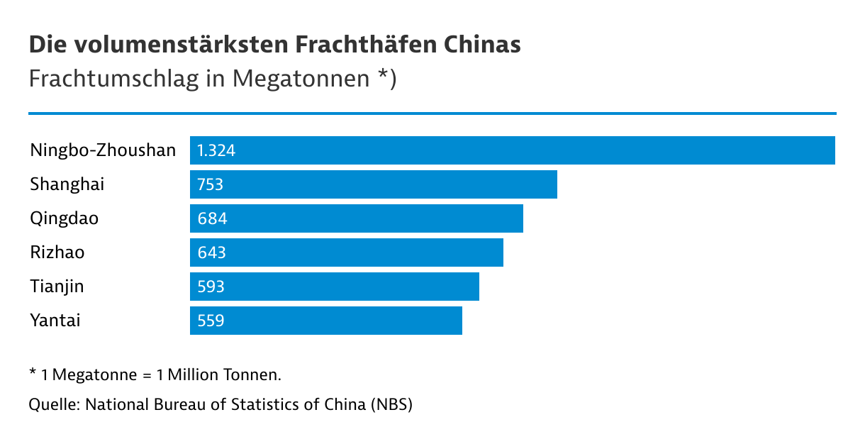 Der Großteil des chinesischen Außenhandels läuft über 34 internationale Häfen; wöchentlich verkehren etwa 15 Containerschiffe nach Europa. Laut dem Betreiber des Hafens von Yantian in Shenzhen, dem sechstgrößten Hafen Chinas nach Frachtumschlag 2023, hat vor allem die Verschiffung von Solarpanelen und Elektrofahrzeugen nach Europa zugelegt, im Vorjahresvergleich um etwa 50 Prozent.