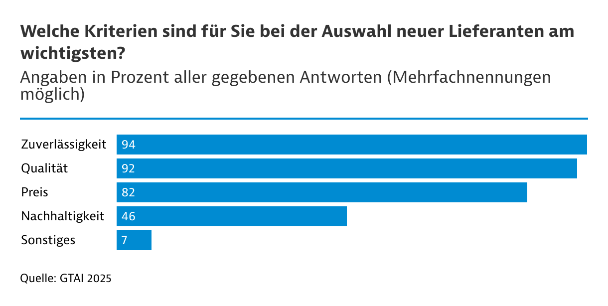 Zwar bleiben günstige Einkaufspreise ein relevanter Faktor bei der Beschaffung kritischer Rohstoffe. Doch die Unternehmen sind bereit, durch volatile Märkte und geopolitische Spannungen entstehende langfristige Risiken zu minimieren. Und für die Stabilität ihrer Lieferketten nehmen sie höhere Kosten in Kauf.
