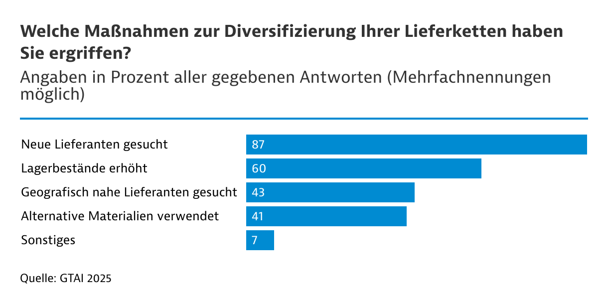 Das bestätigt auch Franziska Brall, Referentin für wirtschaftspolitische Grundsatzfragen beim für die Elektro- und Digitalindustrie tätigen Branchenverband ZVEI. "Unternehmen investieren bewusst in die Diversifizierung von Lieferketten – durch neue oder regionale Lieferanten, den gezielten Aufbau strategischer Lagerbestände oder den Einsatz alternativer Materialien." Diese Maßnahmen seien zwar kosten- und ressourcenintensiv, verringerten aber das Risiko von Lieferverzögerungen und Produktionsausfällen.