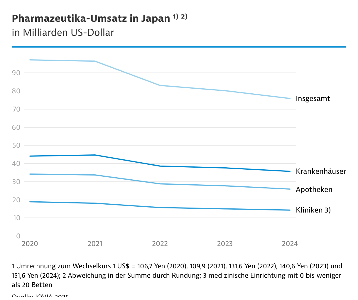 Im Jahr 2024 gewannen Arztpraxen und Krankenhäuser an Bedeutung in der Verschreibung von Arzneimitteln. Dort und auch in den Apotheken liegen die Umsätze in Yen über dem Niveau von 2019 vor der Pandemie.
