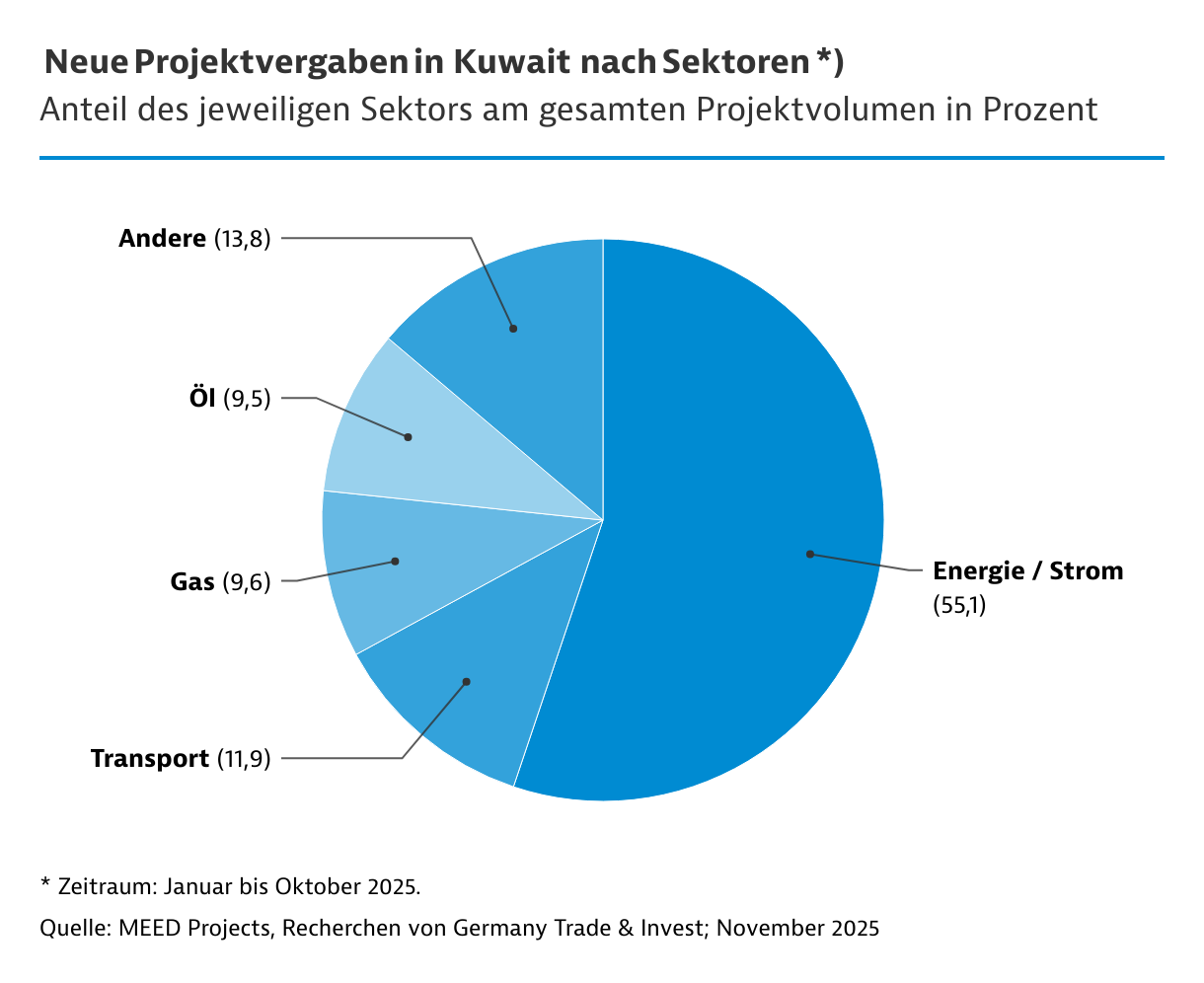 Kuwait investiert in Energie- und Infrastrukturprojekte. Trotz der Sparpolitik wächst die Projektvergabe 2025, getragen von milliardenschweren Großvorhaben.
