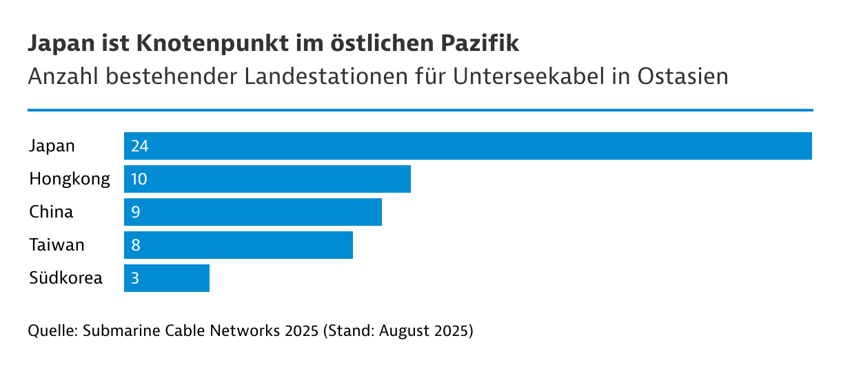 Vor dem Hintergrund höherer geopolitischer Spannungen will die EU mit dem "EU Action Plan on Cable Security" von 2025 Unterseekabel als kritische Infrastruktur verstärkt schützen. Japan hat Unterseekabel ebenfalls 2025 zur Liste kritischer Infrastruktur hinzugefügt und eine Überprüfung der eingesetzten Kabelteile gestartet, um chinesische Zulieferungen auszusondern, ähnlich wie es die USA tun. Denn China wird zunehmend als Konkurrent betrachtet. Dies betrifft sowohl die Zulieferung von Bauteilen für die Kabelinfrastruktur als auch die Kontrolle der Datenflüsse.