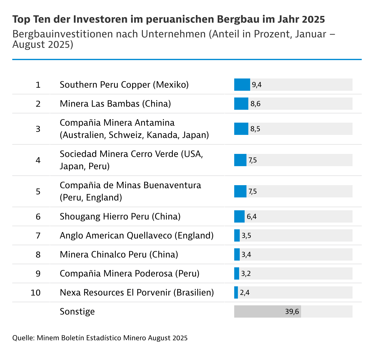 Deutsche Firmen sind bei Bergbauprojekten in Peru wichtige Lieferanten – und ihre Bedeutung dürfte wachsen. Branchentrends spielen ihnen dabei in die Karten. (Stand: 02.12.2025)